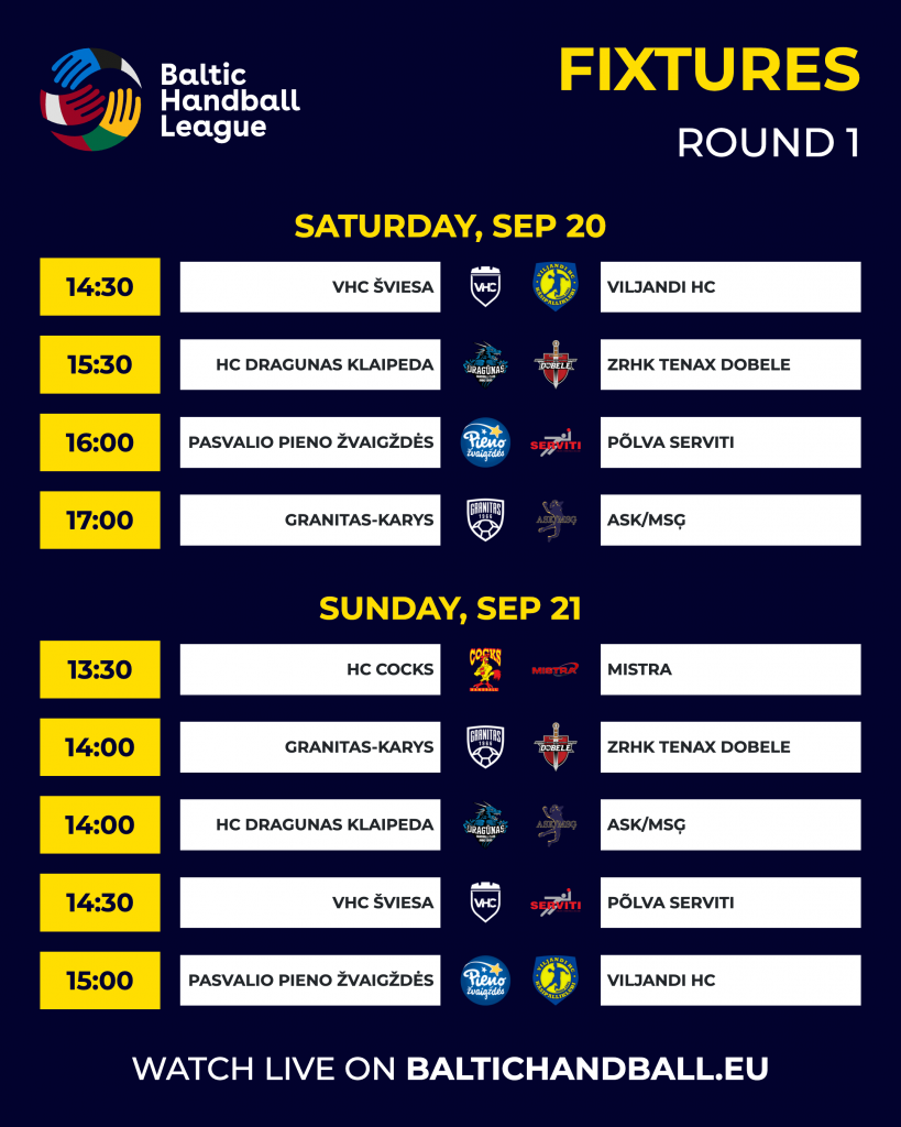 Round 1 kicks off on Saturday, September 20, with four exciting clashes, followed by five more battles on Sunday, September 21. Top teams from across the Baltics return to the court to fight for early momentum in what promises to be another thrilling season.